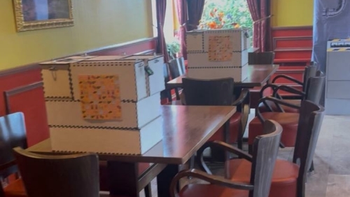 6 groepjes van maximaal 4 kinderen staan bij een tafel met daarop een Escape Box. Voordat het spel begint, krijgen ze eerst uitleg van de spelauteur.
